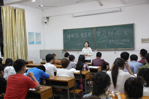 讨论会伊始,李永贵发表讲话,提出全体党员要坚定信念,牢记宗旨,争做先锋模范,坚信共产主义。要求党员要提高自身修养,时刻谨记自己的党员身份。随后,瞿贻航发言,指出本次讨论会的目标是坚定正确的政治方向,聚焦突出问题并解决部分党员党性修养不足的问题。而本次讨论的主题则是以坚持教育为主,坚持领导带头,坚持从实际出发为基本原则。同时,瞿贻航要求全体党员干部带头践行党章,坚持做“四讲四有”的党员。而后第八党支部副书记候宇楠对全体党员提出了几点要求。一是要时刻检讨自己的行为,端正入党动机;二是要坚持个人利益服从于集体利益;三是要避免对其他同学造成不好的影响;四是要懂得感恩与回馈。发言结束后,各党支部正式党员带头发表了对于讨论主题的看法,全体与会党员积极讨论,气氛活跃。最后,李永贵老师总结到“所有党员要保持自信,时刻认识自己的差距。积极交流,不流于形式。”并且希望全体党员同志认真学习党章。