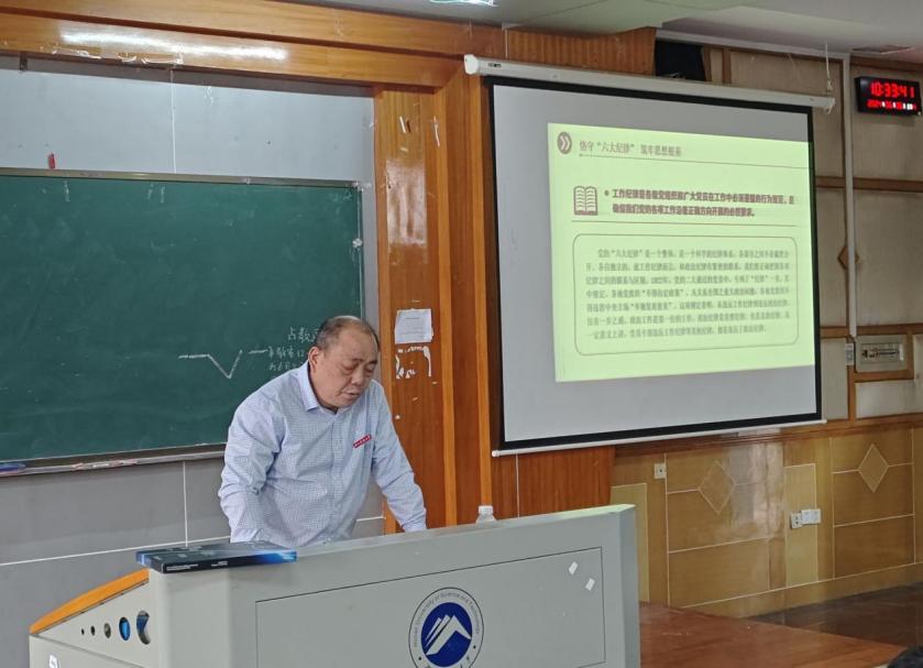 2024年6月6日,yl7703永利官网院党委书记万文以“恪守六大纪律,筑牢思想根基”为主题,在第五教学楼2-1教室为全院学生党员讲授专题纪律党课。
