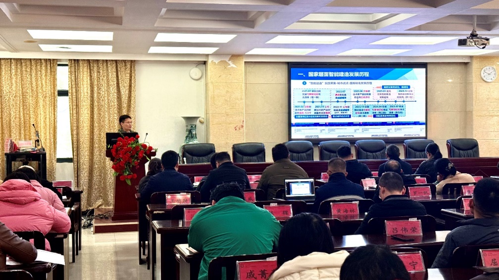 黄志从国家智能建造政策演进切入,重点解读住建部最新发布的智能建造技术导则、24个试点城市建设成果及典型工程案例。当前,智能建造正成为建筑业高质量发展的关键抓手,技术体系、人才培养和标准规范正加速迭代完善,行业正迈向数字化、智能化、工业化深度融合的新阶段。结合区域发展实际,他详细介绍了湖南“智能建造模式”的探索路径及长沙、岳阳、株洲等地的示范应用成果。同时,重点介绍了学院在智能建造专业建设、课程改革、实践平台建设、师资培训等方面的阶段性成果与未来布局,提出了打造协同育人联盟、深化产教融合、构建示范性实践体系等目标举措,打造特色鲜明的“湖科大模式”。