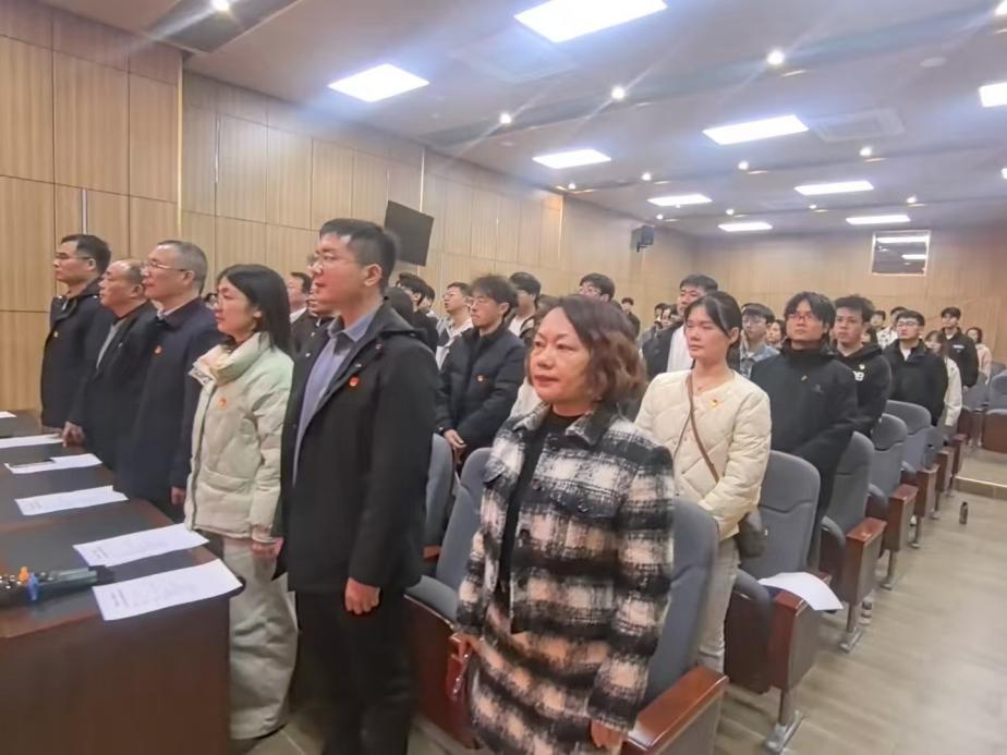 学生代表杨奕轩结合专业学习与红色传承,以“钻劲、实劲、闯劲”深刻诠释新时代学生党员的责任担当与初心坚守,引发在场青年学子强烈共鸣。
